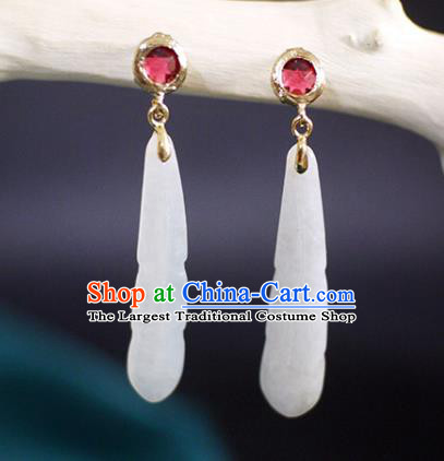 China Ming Dynasty Ear Jewelry Ancient Princess Jade Feather Earrings