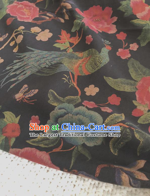 Asian Chinese Traditional Embroidered Flowers Black Song Brocade Silk Fabric, Top Grade Satin Tang Suit Hanfu Dress Fabric Cheongsam Cloth Material
