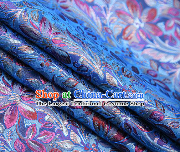 Asian Chinese Classical Embroidered Flowers Pattern Design Royalblue Satin Fabric Brocade Traditional Drapery Silk Material