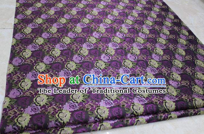 Traditional Chinese Royal Cherry Blossom Pattern Design Purple Silk Fabric Brocade Asian Satin Material