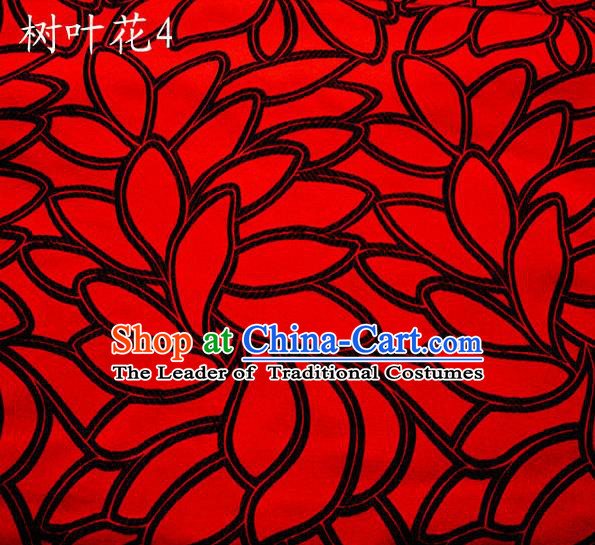 740. Asian Chinese Traditional Handmade Embroidery Golden Leaf Pattern Satin Wedding Silk Fabric, Top Grade Nanjing Brocade Tang Suit Hanfu Fabric Cheongsam Red Cloth Material