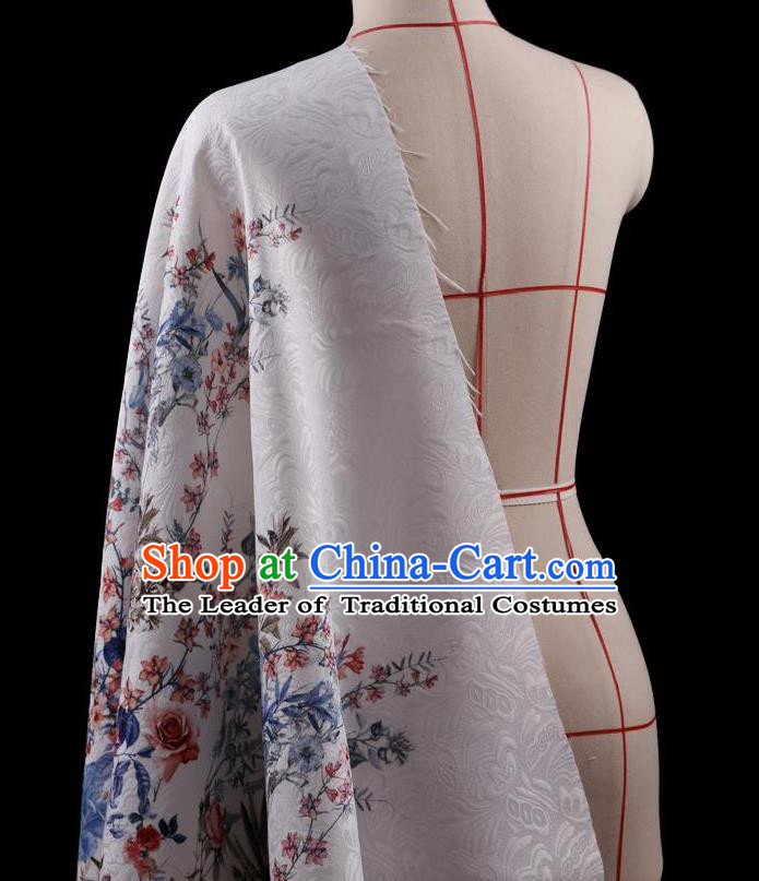723. Chinese Traditional Palace Pattern Tang Suit Cheongsam White Brocade Fabric, Chinese Ancient Costume Hanfu Satin Material