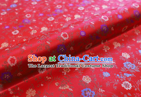 Asian Traditional Fabric Classical Embroidered Flowers Pattern Red Brocade Satin Silk Material