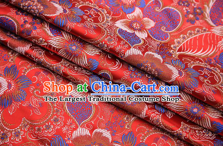 Chinese Traditional Royal Court Flowers Pattern Red Brocade Xiuhe Suit Fabric Ancient Costume Tang Suit Cheongsam Hanfu Material