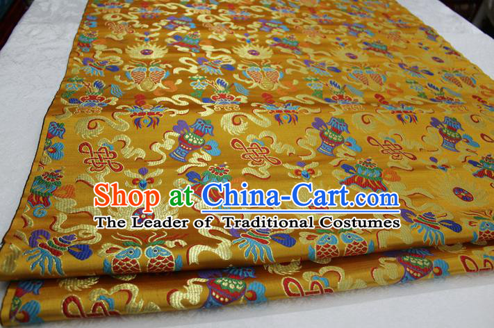 13038. Asian Chinese Classical Pattern Design Yellow Silk Fabric Traditional Nanjing Brocade Material