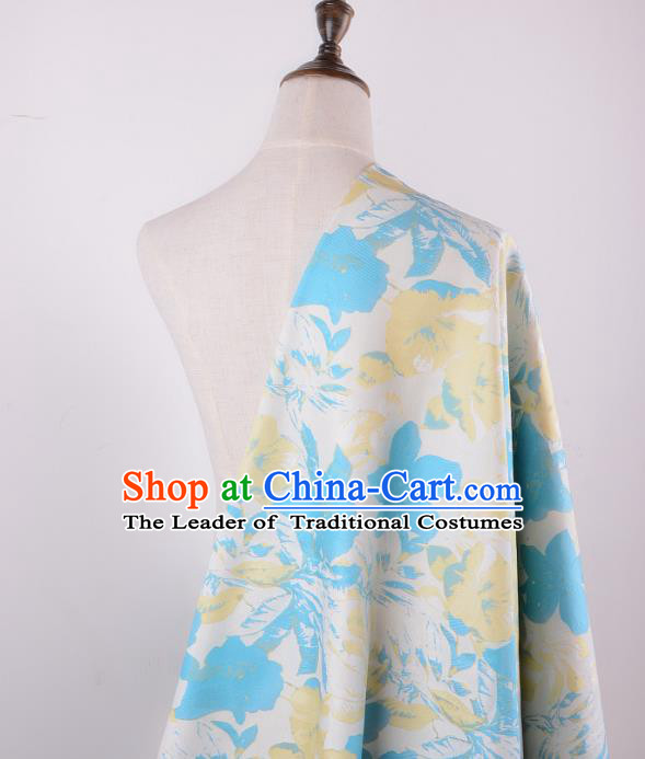 Asian Japan Kimono Classical Flow Water Pattern Brocade Tapestry Traditional Hanfu Dress Blue Silk Fabric