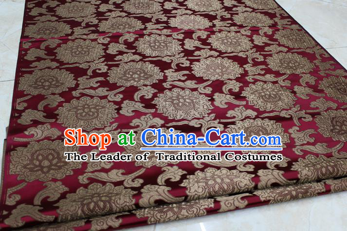 Asian Chinese Traditional Satin Fabric Tang Suit Wine Red Brocade Silk Material Classical Clouds Dragons Pattern Design Drapery