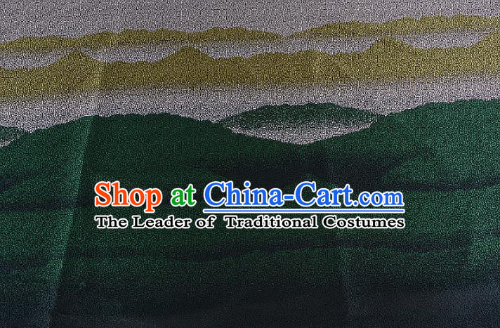 Asian Traditional Cheongsam Cloth Watered Gauze Fabric Chinese Classical Peony Pattern Green Silk Drapery