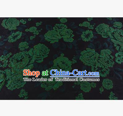 Asian Chinese Classical Phoenix Peony Pattern Deep Green Satin Drapery Gambiered Guangdong Gauze Brocade Traditional Cheongsam Brocade Silk Fabric