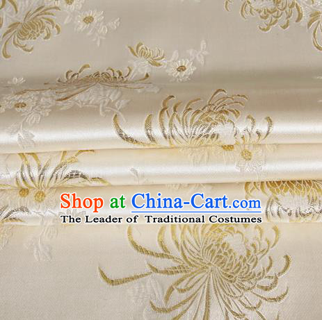 Chinese Traditional Embroidered Flowers Pattern Design Beige Silk Fabric Asian Hanfu Material