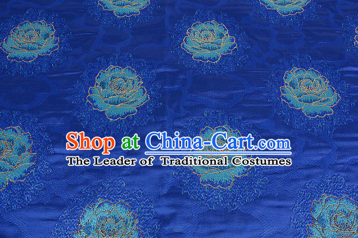 Chinese Traditional Cheongsam Classical Magnolia Peony Pattern Navy Gambiered Guangdong Gauze Asian Satin Drapery Brocade Silk Fabric