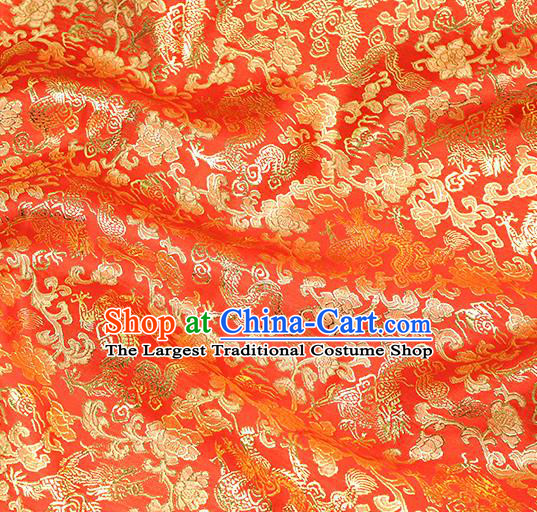 3457. Traditional Chinese Red Nanjing Brocade Drapery Classical Fishes Pattern Design Satin Qipao Dress Silk Fabric Material