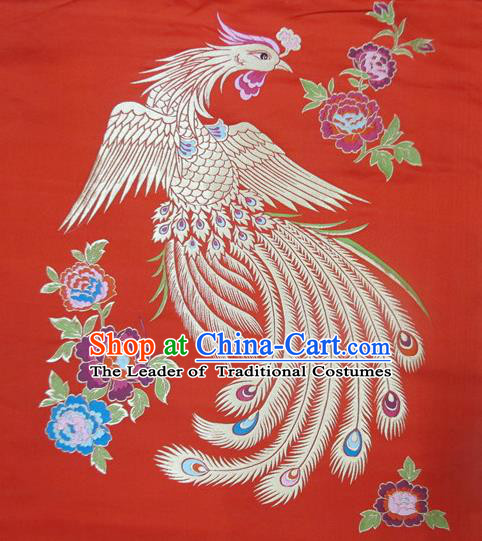 4630. Asian Chinese Classical Phoenix Peony Pattern Red Nanjing Brocade Traditional Tibetan Robe Satin Fabric Silk Material