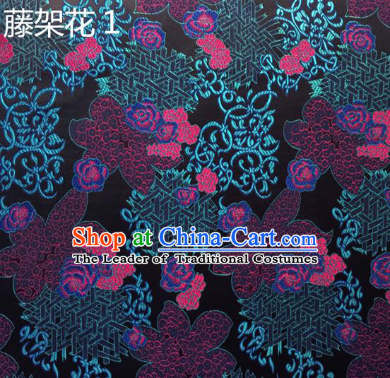 4823. Asian Chinese Traditional Buddhism Auspicious Lotus Pattern Navy Brocade Tibetan Robe Satin Fabric Silk Material
