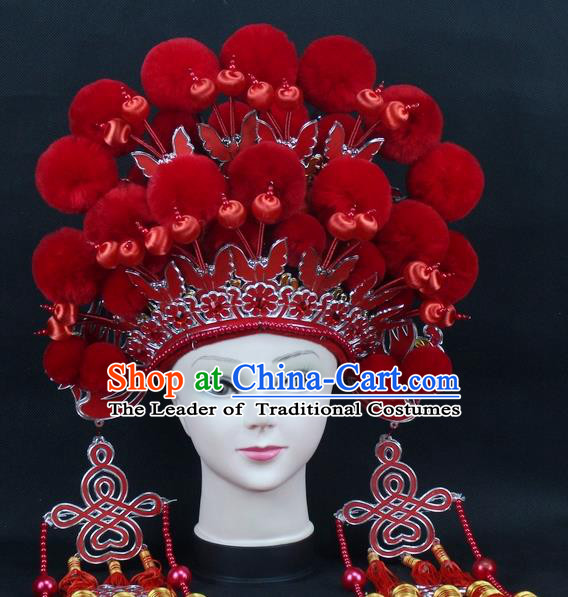 60241. Chinese Beijing Opera Niche Red Hat Traditional Peking Opera Bridegroom Headwear for Men