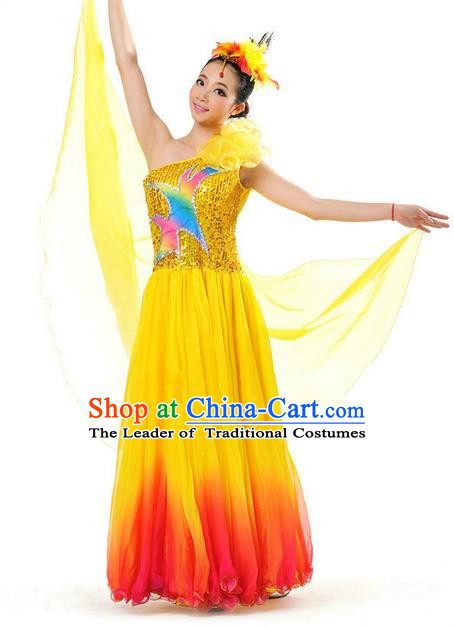 66426. Chinese Classic Stage Performance Chorus Singing Group Costumes, Opening Dance Competition Red Dress, Classic Dance Clothing for Women
