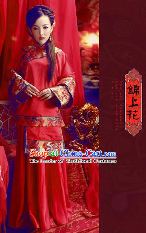 69429. Chinese Traditional Wedding Costumes Ancient Bride Embroidered Xiuhe Suits Red Full Dress for Women