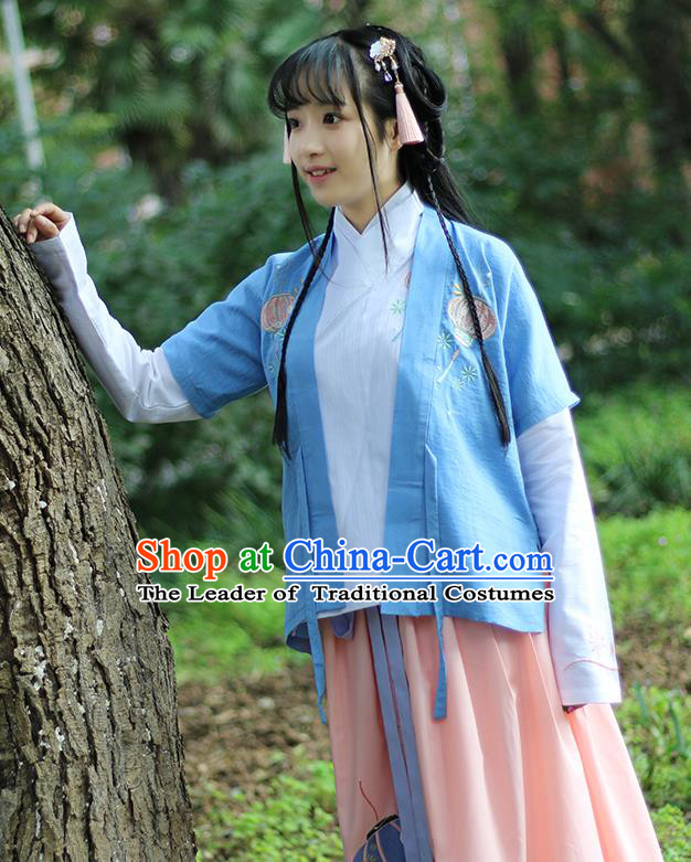 Traditional Chinese Han Dynasty Imperial Princess Costume, Elegant Hanfu Clothing Blouse and Skirts, Chinese Ancient Young Lady Embroidered Cardigan Dress for Women
