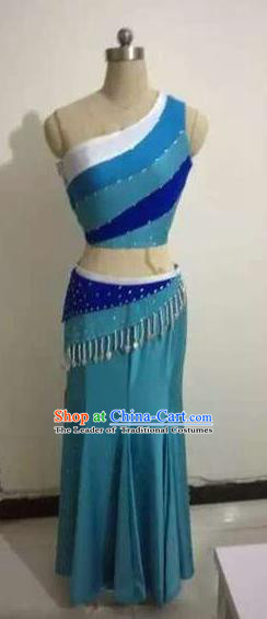 China Yunnan Ethnic Stage Performance Garments Peacock Dance Blue Dress Dai Nationality Folk Dance Clothing