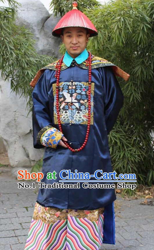 Asian Chinese Beijing Opera Peking Opera Male Costumes and Hat Complete Set