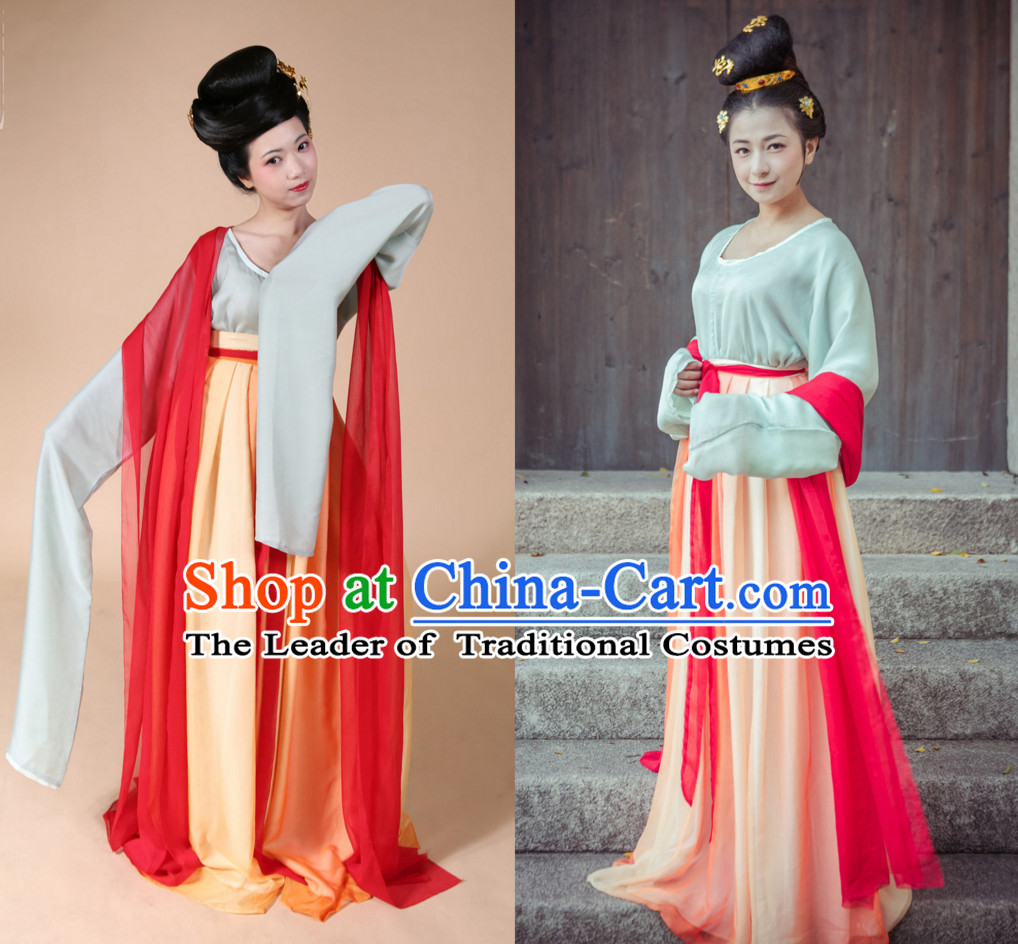 13697. Tang Dynasty Ancient Chinese People Suits and Headpieces Complete Set for Women
