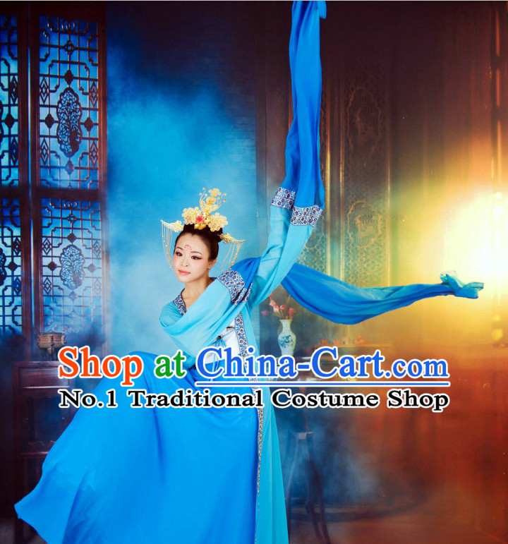 13812. Chinese Water Sleeve Shuixiu Dance Costumes and Headpieces Complete Set for Women