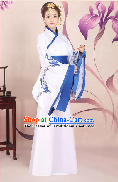 Chinese Traditional Cosplay Swordswoman Costume Ancient Peri Princess White Hanfu Dress for Women