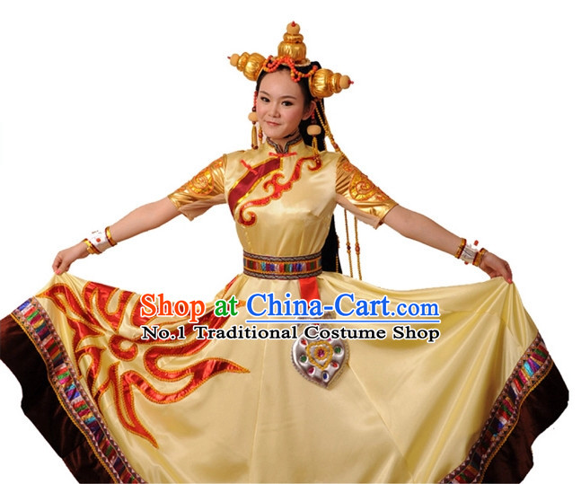 19702. Chinese Stage Dance Costumes Ribbon Dancing Costume Dancewear China Dress Dance Wear and Hair Accessories Complete Set