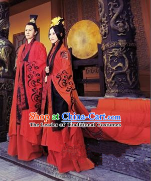 Traditional Chinese Empress Red Dance Costumes and Headpieces Complete Set