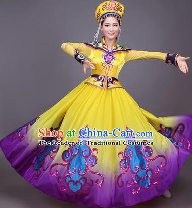 25528. Chinese Mongol Nationality Costume Golden Mongolian Robe Traditional Mongolian Minority Folk Dance Clothing for Men
