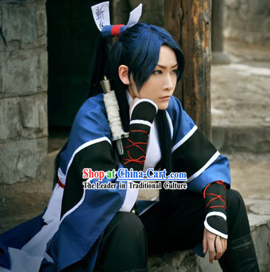 26060. Long Sleeves Classical Chinese Dance Costumes and Hair Accessories Complete Set for Men