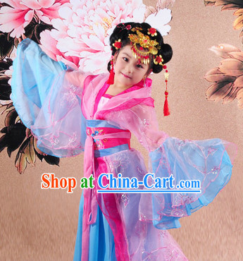 30195. Traditional Chinese Stage Performance Hua Dan Costumes and Headpieces for Kids