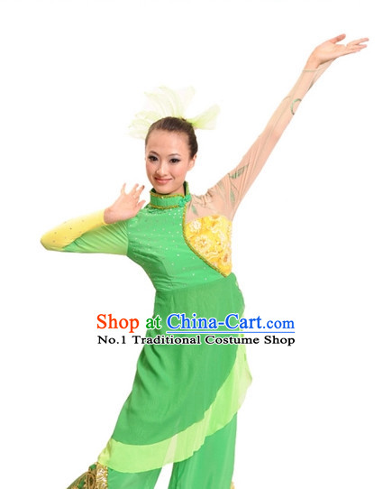 30569. Chinese Traditional Stage Long Sleeves Dance Dancewear Costumes Dancer Costumes Dance Costumes Clothes and Headdress Complete Set for Girls Ladies