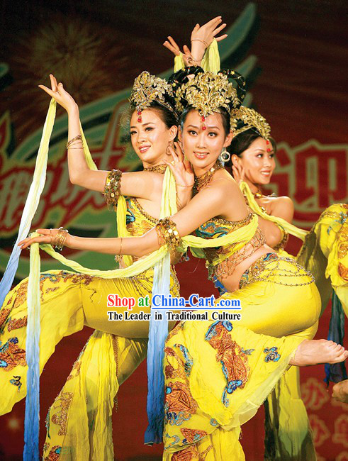 31683. Chinese Folk Dance Costumes Apparel Dance Stores Dance Gear Dance Attire and Hair Accessories Complete Set for Women