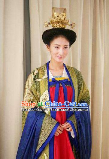 35298. Traditional Chinese Ancient Princess Consort Costumes and Handmade Headpiece Complete Set, The Glory of Tang Dynasty Senior Concubine Trailing Dress Clothing for Women