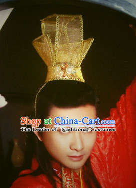 46742. Ancient Chinese Princess and Bridegroom Wedding Dresses Traditional Royal Stage Hanfu Classical Dress National Costumes Clothing and Hair Jewelry Complete Set