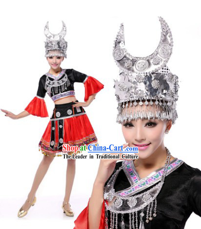 47106. Stage Classical Zhuang Dancing Costumes and Headwear for Ladies