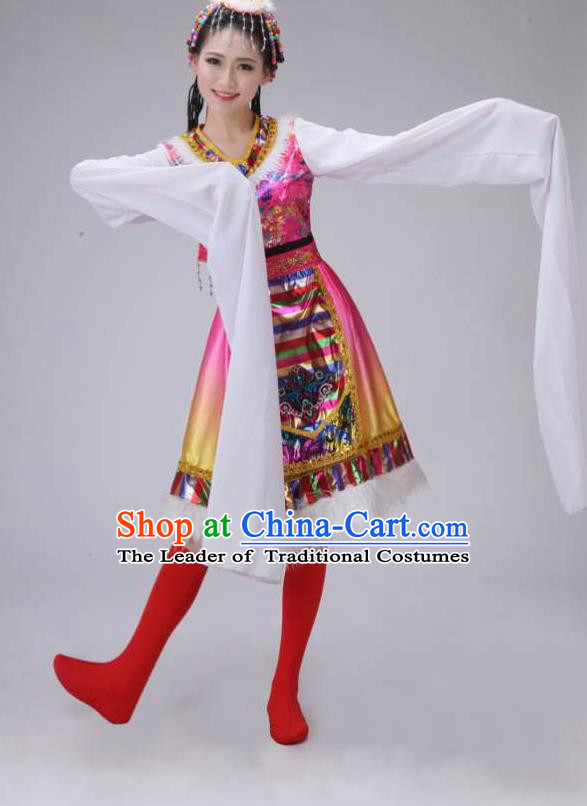 49270. Chinese Traditional Stage Performance Costume Classical Dance Water Sleeve White Dress for Women