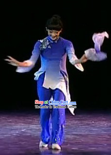 Traditional Chinese Classical Dance Group Dance Blue Dress Umbrella Dance Stage Performance Costume for Women