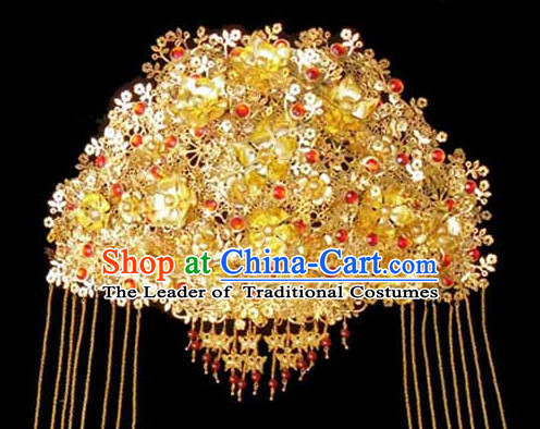 57328. Chinese Beijing Opera Bride Yellow Phoenix Coronet Traditional Peking Opera Princess Hat Hair Accessories for Women