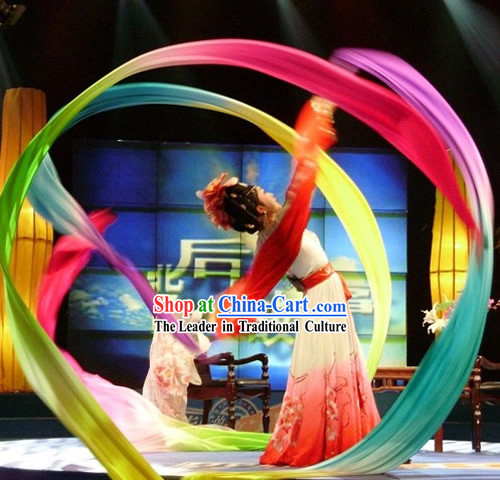 16. 3 Meters Long Pure Silk Handmade Rainbow Color Dance Ribbon