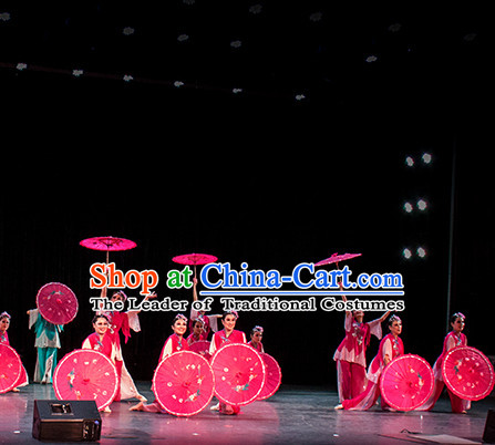 Chinese Classic Pink Lotus Flower Dance Umbrella