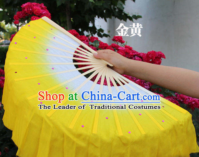 319. Yellow 16 Inches Pure Silk Color Change Chinese Dance Belly Dance Hand Fans Hand Fan Japanese Wedding Fans Oriental Fan