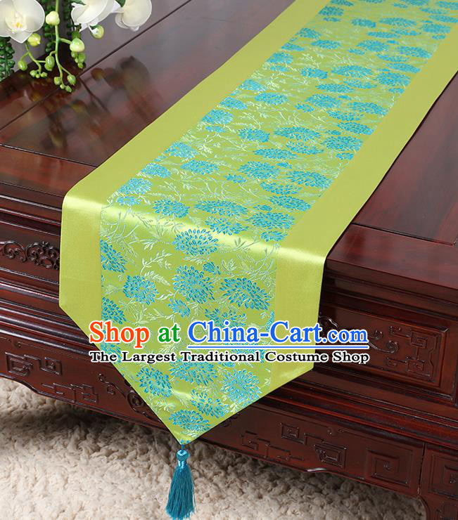 Asian Chinese Green Brocade Fabric Traditional Chrysanthemum Pattern Design Satin Pillow Silk Fabric Material